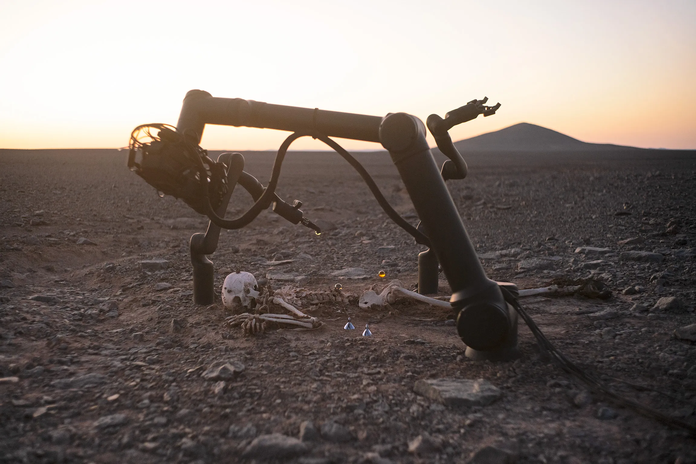 一組機器在對在智利阿塔卡馬沙漠發現的一具年輕男性的骷髏執行某種未知的儀式。這是世界上最古老、最乾燥的沙漠,也是天文學家研究外行星 (即存在於我們太陽系之外的行星)的試驗場。機器所執行的儀式顯現出無盡的葬禮儀式、一個手術室,以及特定無生命主觀性的學習過程和形成。