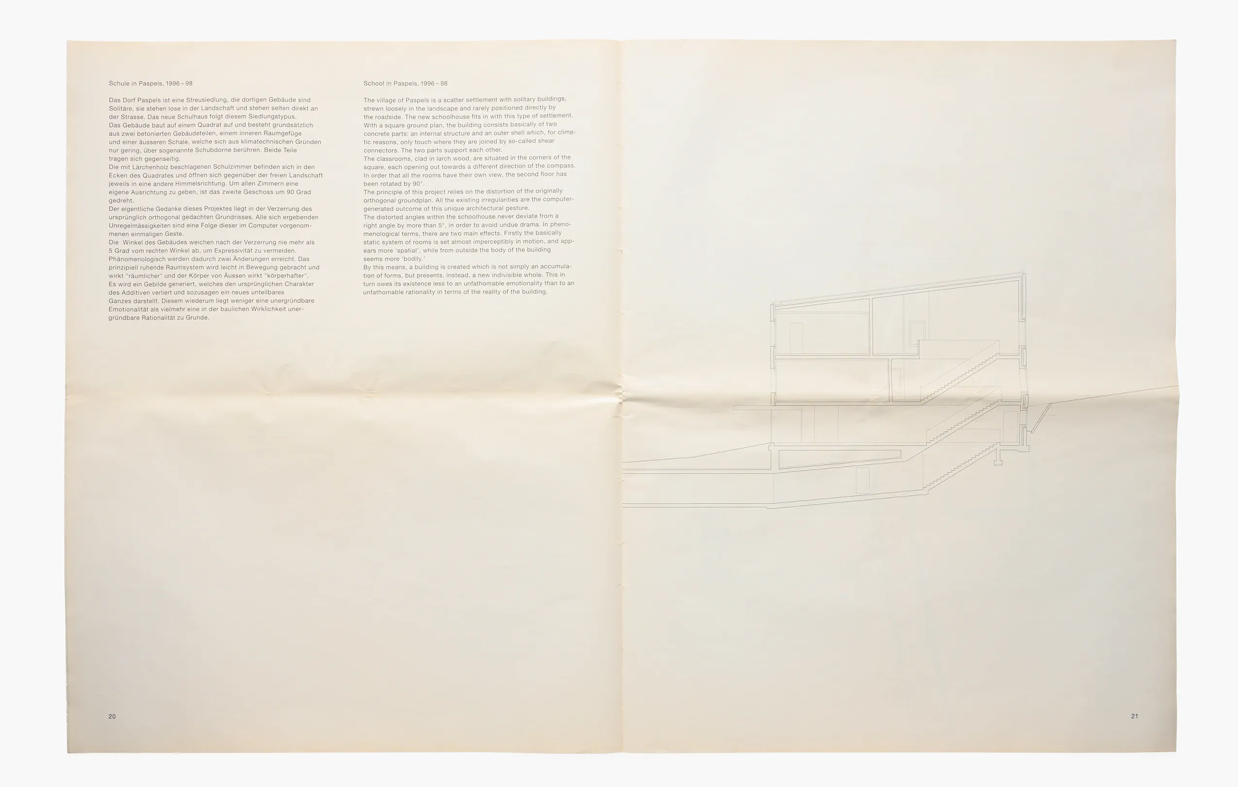 自1990年代末以來,瓦雷里歐.奧吉阿蒂(Valerio Olgiati)被視為瑞士最獨立,最傑出的代表性建築師之一。其作品包含帕斯佩斯學校(School Building Paspels, 1998)、「黃屋」博物館(Das Gelbe Haus, 1999)、瑞士國家公園遊客中心(Visiting Center Swiss National Park, 2008),以及參與臺灣故宮南院競圖的提案(National Palace Museum Taiwan, 2004)等。關於奧吉阿蒂的典藏出版品包含了《奧吉阿蒂的14位學生作品集:1998-2000》(14 Student Projects with Valerio Olgiati 1998-2000)、限量發行500份的《瓦雷里歐.奧吉阿蒂:一百分之一圖面》(Valerio Olgiati PLAN 1:100)等絕版書籍。