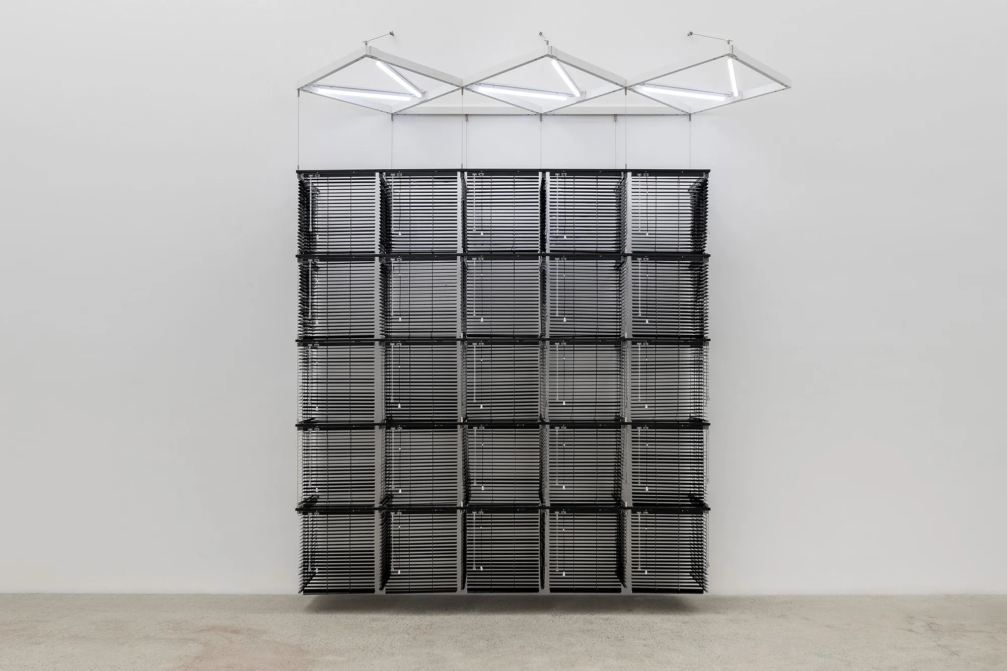 Sol LeWitt Upside Down onto Wall – Cubic-Modular Wall Structure, Black, Expanded 11 Times