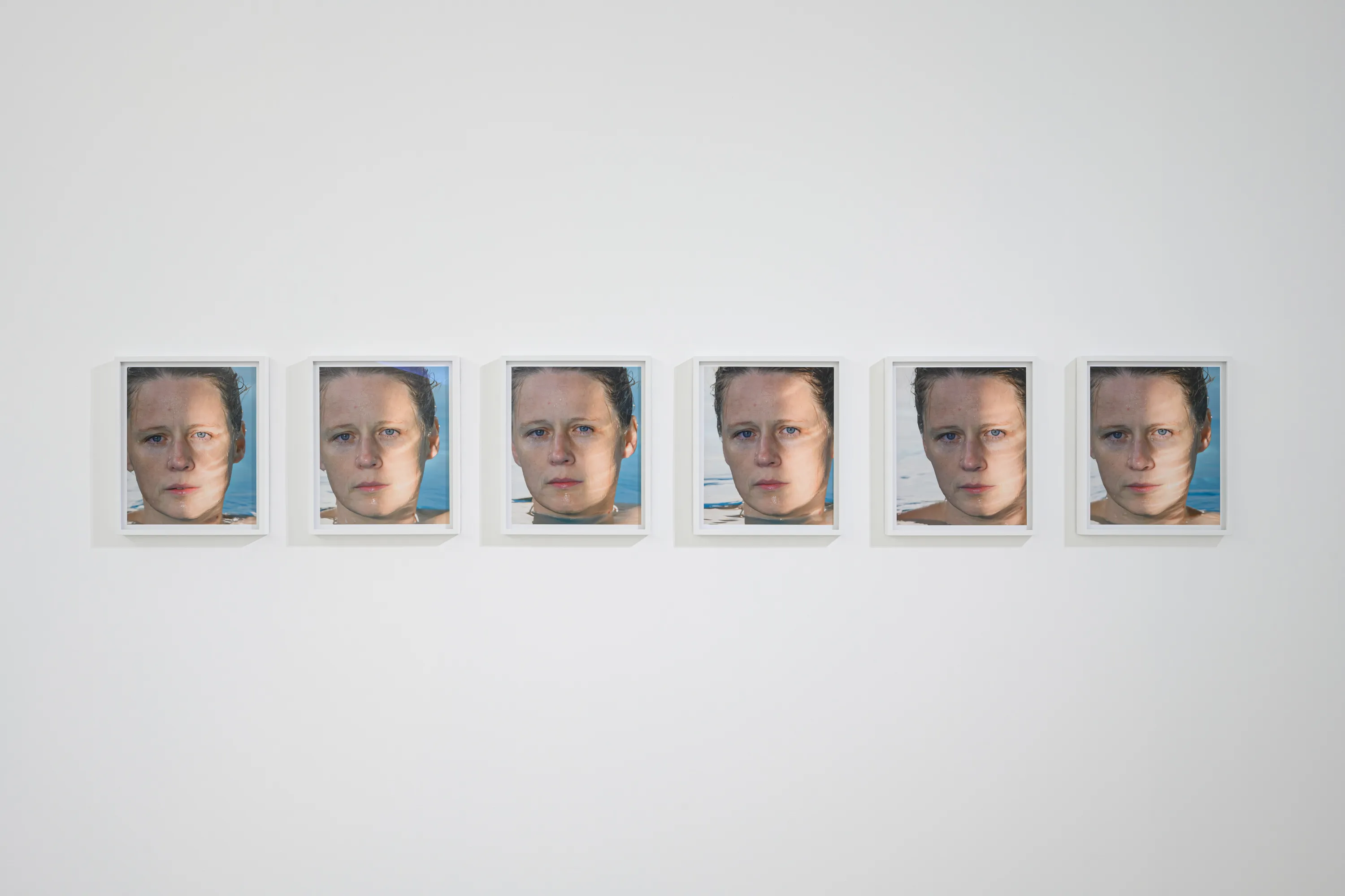 Another series, White Dickinson, similarly reflect Horn’s enduring interest in literature. From the front, the sculptures are clearly identifiable fragments of poetry and public letters sourced from the writings of American poet Emily Dickinson. When viewed from other angles, however, the letters are abstracted and the meaning is lost, encouraging a reflection on the protean components of language and the relationship between artist and poet. “Untitled, No. 14” and “Untitled, No. 16” are part of a larger series of photographs the artist began in 1998. Both juxtapose two images (of a bird, and person’s head, respectively) to reveal the similarities and differences between the paired photographs. Meanwhile,“Untitled (Weather)” and “Still Water (The River Thames, for Example)” elicit dialogues between the viewer and the work through a string of subtle nuances in the woman's expressions and the elusive and constantly fluctuating colors and texture of the surface of the water.